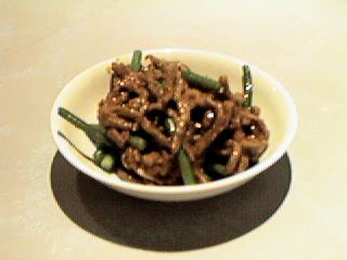 ニンニクの芽と牛肉の炒め物は、可もなく不可もなくかな。もう少し味が薄目の