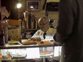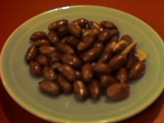 ルを注文していました。ビールを頼むと、炒めたピーナッツがついてきます。