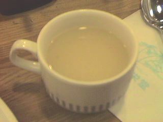 - まずスープが出てきます。写真のライスは中盛ですが、