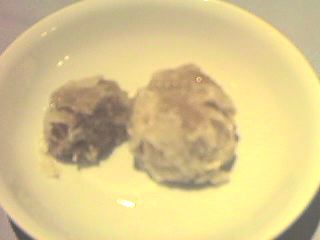 - 普通に美味しい。やはり味が十分つけてあるので、何もつけずに食べられる。写真は食いかけのようなものが写っているが、これは4個きたのを無理矢理3人でわけたためである。