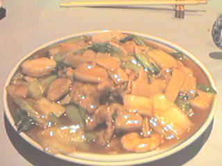 - これは取り分ける前の写真。この店は高いメニューが多いと思われがちだが、焼きソバなどは、値段と盛りのバランスから考えると安いと言えるだろう。湖南料理は乾燥保存した食材を多く使うが(そのせいで全体に塩辛いのか?)、そういった具からよく味が出ていて美味しい。
