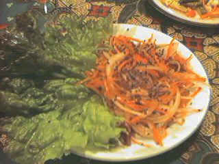 - ちょっと人参が多すぎるかな。人参を少し減らして、玉ねぎをもう少し増やしてくれるといいのだけどね。胡麻がかかっているのはよかった。(binbou)