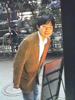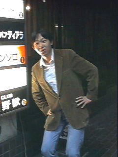 お店は六本木駅の2番出口を出て2〜3分歩いた所にあります。入口の看板の横には、例によってあの人が立っていました。