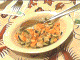 - 鶏肉は骨付き。ニンジンなどと甘辛ソースで煮て、