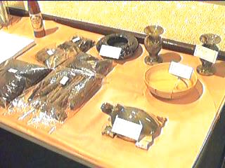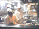 お店に入ってすぐのところには、なんだかよく分からない土産物(?)がならべてあり、その向こうのガラス越しに厨房が見えます。