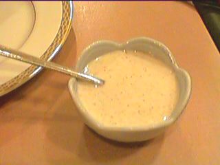 ヨーグルトにスパイスを加えたソースです。 かなり酸っぱめです。(binbou)