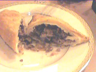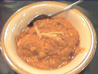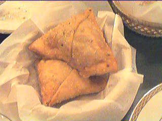 つなぎに芋とか入っていないので、割ると中身のマトンの挽き肉が ボロボロっと出てきてしまいます。味はこれも薄味。最初に出てきた ヨーグルトベースのソースをかけて食べるとよいです。(binbou)