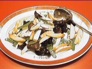 - マコモとキクラゲとさやエンドウを炒めたものです。マコモの歯ごたえがなかなかおいです。(binbou)