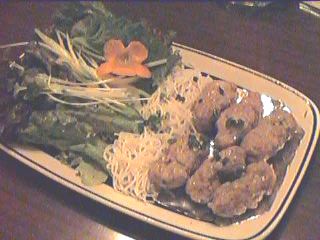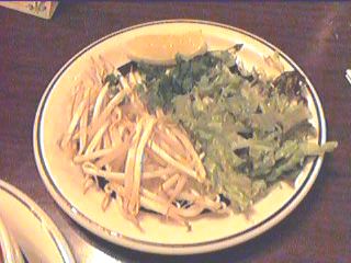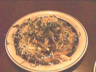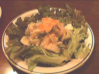 - 鳥肉のサラダ。キャベツと鳥肉、スナギモ。アンコールワットとかの鳥サラダに似てるけど、さっぱり感がなかったね。(messiah)