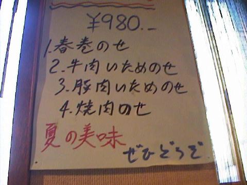 この「××のせ/夏の美味」というのは、××が何の上にのせてあるのだろう?