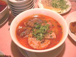 - この店で1番辛いって言ってたけど、そんなに凄く辛いものじゃなかったよね。美味しかった。隣りのベトナム人風の女の子はこれを1人で食べてね。具は、玉ねぎの薄切りと牛肉とハム。キュウリとレタスを千切りにしたものとモヤシとレモン。これはお好みで入れて食べるんだね。パクチーは少ししか入ってなかったね。(messiah)
