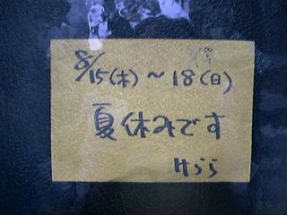 きょうは本当はタイ風料理の「けらら」に行くはずだったんだけど、行ってみたらお盆で休みだったんだよね。しょぼ〜ん(笑)。(messiah)