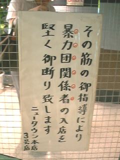 シャムの隣りのお店の入口の所。「その筋の御指導により」っていうのがいいよね。