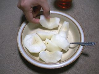 JIN-NETマシンルームでのおやつは、名古屋に行っていてマシンルームからの参加となったitojunのお土産のういろーと、JKさんのお土産の梨でした。(binbou)