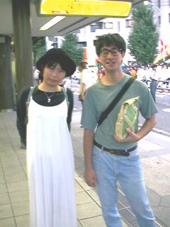 いつものように仲の良いyukoちゃんとjinさん。jinさんが持ってるのは世界堂の袋ですね。中身はyukoちゃんの絵の具など絵の道具類。(binbou)