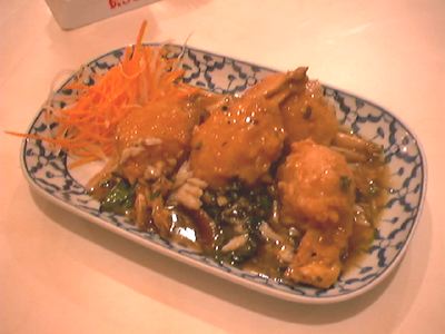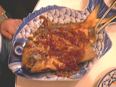 - 頼む時に、ちゃんと骨まで揚がってて全部食べられるかどうか確認して、持ってきた時にも骨まで揚がってるから全部食べられるって言ってたけど、その割にはもうちょっとカラっと揚げて欲しいかなって感じだったね。あと上にかかってるタレがナムプリックっぽいっていうか、唐辛子とナンプラーの味がかなり強かったね。ま、これは美味しい方じゃないかな。(messiah)