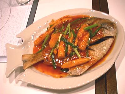- ヒレの部分がカリっと揚がっててわりと美味しかったよ。この手の魚は頭とかヒレの部分がいいね。あとベビーコーンがいっぱいのってた。(binbou)