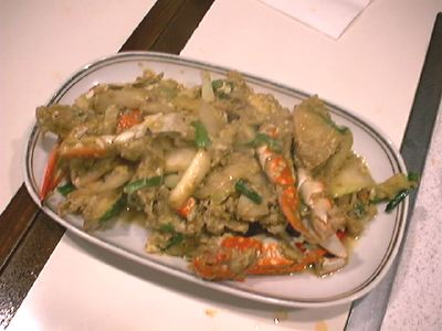 - 空心菜だよね。最初のサラダで口がだいぶ辛くなったけど、この炒め物で一息かな。これに入ってる赤い唐辛子食べちゃうと思いっきり辛いけど(笑)。(binbou)