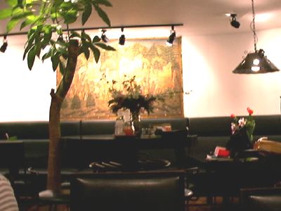 店内にはほとんどインド風の飾り付けなどはないのですが、唯一、インド風の絵が描かれた壁飾りがかけてあります。