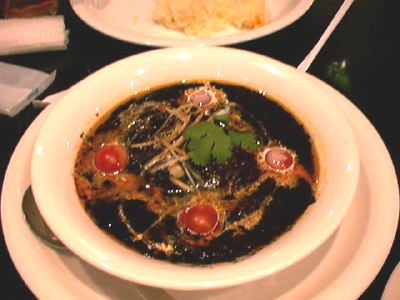 カラカレー、いかすみのカレーもここの名物カレーのひとつでお薦めのメニューだね。歯が黒くならないのは、油やスパイスの混ざり具合に何か関係があるらしいけど、歯が黒くならないように研究して作ったわけじゃなくて、できてみたらたまたまそうなったということらしいけど。(messiah)