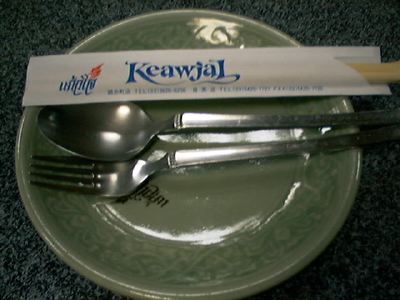 お皿の模様は、keawjaiをタイ語で書いてロゴ化したものなんだって。(k-kuma)