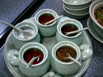 - きゅうり、ナッツ、唐辛子、プラムソース。