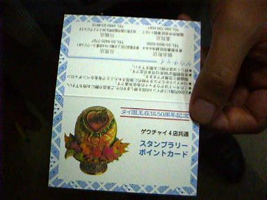 ゲウチャイ4店舗共通のスタンプカード。2,000円ごとにスタンプを押してもらえて、たまるとお皿などのプレゼントがもらえます。