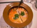 - ココナッツミルク多めのレッドカレーみたいに見えるけど、味もそんな感じ。ご飯にかけて食べたくなる。(binbou)
