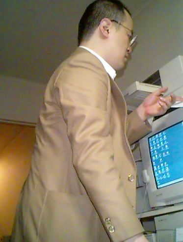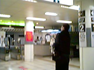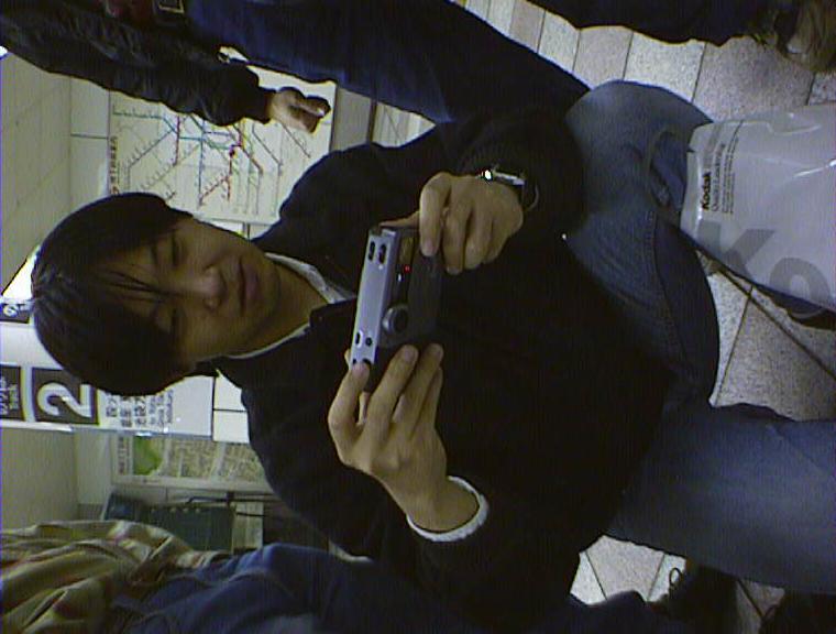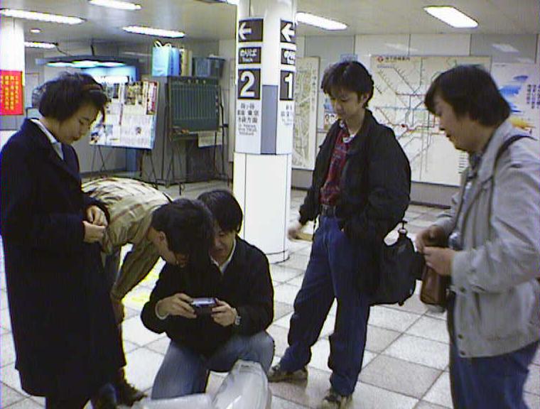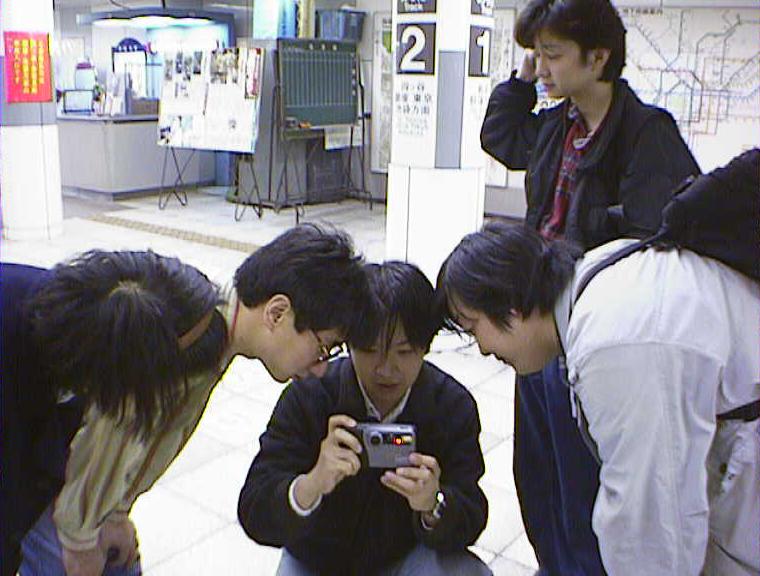 DC25(テスト機)を借りました。 駅で箱を開けてみんなで見入る(DC-2Lで撮影)。