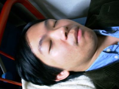 座りながらも寝ている。