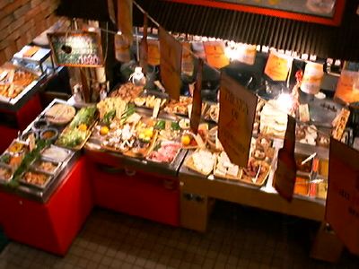 - 皿に盛り放題。お店のお姉さんとジャンケンして勝つとタダになる。