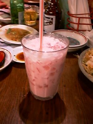 - イチゴジャムをミルクと混ぜた感じ。ご飯物と一緒に食べるのは気持ち悪かった(笑)。(messiah)