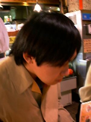 真剣にメニューを見ているmessiahくん。いつコートの前をあけるかタイミングを計っているのか?(笑)。