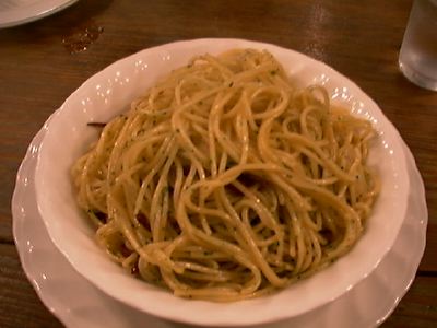 ペペロンチーニ。きのう他のお客さんが激辛ペペロンチーニという注文をしていて、そういうオーダー、辛くしてなんていう注文もOKなんだと知って、早速辛くしてくれと注文してみました。