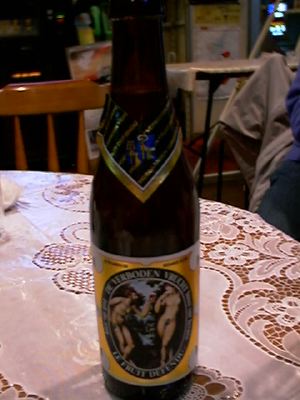 - 酵母が入ったままのビール。ベルビーのビールには多いんだけど。日本で言えば、ハーフアンドハーフにちょっと似てる。酵母臭いのに慣れてないとちょっと飲みづらい。後味すっきりという感じのビールじゃない。(k-kuma)