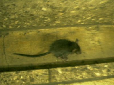 タベルナに行く途中、地下鉄有楽町線の麹町駅改札から日本テレビに行く途中の地下通路にいた小さいネズミ。