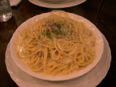 - タベルナのカルボナーラは、こってりしたタイプです。時々、塩コショウが妙にきき過ぎてる事もあるけど、かなり好き。なぜか元気を付けたい時にはカルボナーラを食べることにしてます。(binbou)