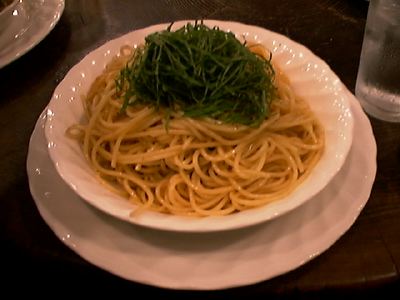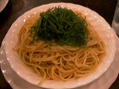 - 赤唐辛子、アンチョビー、ニンニクで炒めた上に、青じそがたっぷりのっています。出てきた時のしその香りがたまりません。しそが苦手な人にはダメだけど、しそOKな人にはおすすめです。きょうもかなりよかった。満足。(binbou)