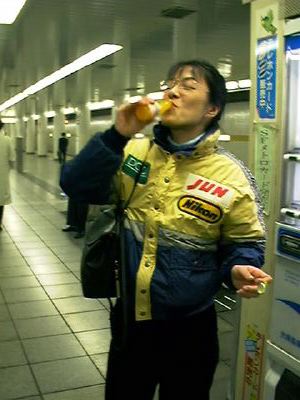 帰りの有楽町線市谷駅ホームでは、例によってファイブミニを飲んだりします。
