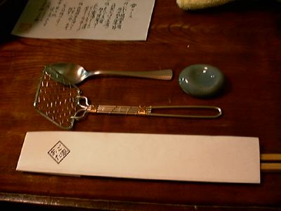 お豆腐をすくう網とお箸は持ち帰りできます。網を入れて持って帰るためのビニール袋も用意されています。