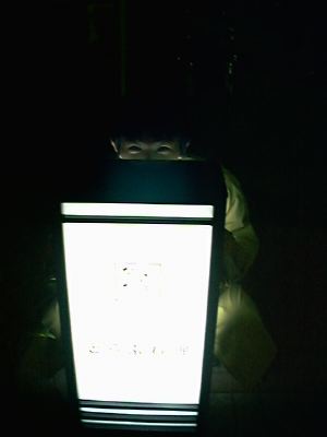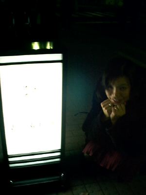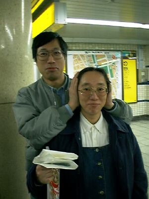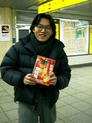 お店の看板と並んでの記念撮影だけど、看板の字は見えないし、並んで写っている人物も思いっきり怪しい(笑)。