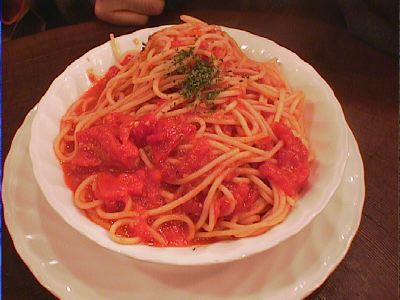 今日のポモドリは麺がちょっとゆですぎな感じでした。すいてたせいかな?(い)