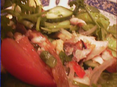 - トリ肉がなんかソーセージっぽい感じがしなかった?このサラダもソースというかドレッシングが、独特の味でよかった。(び)