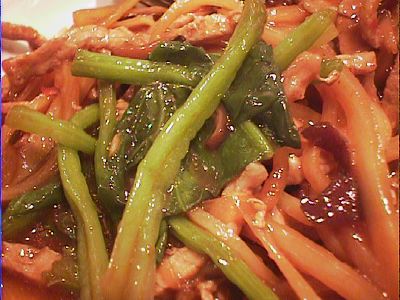- これはね、サラダのメニューのすぐ後にあって、写真がなんか野菜が多くてサラダっぽかったから、食べてみたくなって頼んだの。なんか普通の鶏肉入り野菜炒めだったね。(め)