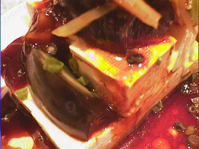 - そうそう。メニューの写真では下にたっぷりと醤油が溜まってる感じの写真だったので、タレをあまりつけないで食べなくちゃと思ってたら、出てきたのはそうでもなかったので忘れて混ぜちゃった。このメニューに限らないけど、値段が安いのに量はたっぷりしててよいです。(め)