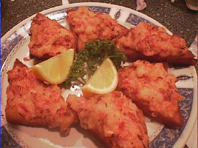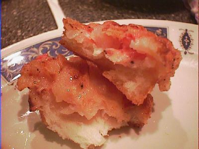 - パンの上にえびのすり身状のもをのせて揚げてある。えびは大き目のと桜えびの二種類使ってあると思う。(び)