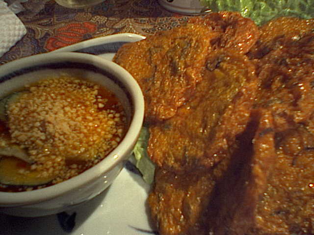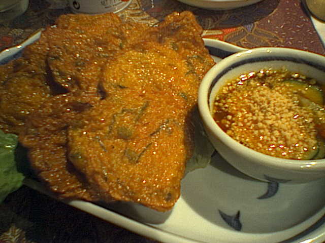 魚がパリパリに揚がってるんだけど、汁けのあるソースだったからへにゃっとしちゃって歯ごたえがいまいちだった。(び)