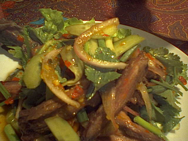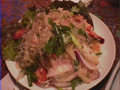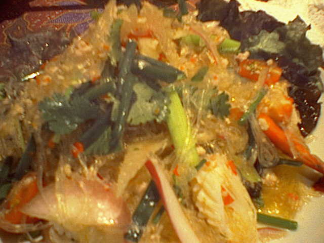 ここの料理はメニューをみると、ヤムウンセンとヤムヌアに「辛い」マークがついてたけど、他のの方がずっと辛かったよ。おいしかったよ。パクチーもちゃんと混ざっててgood。(め)