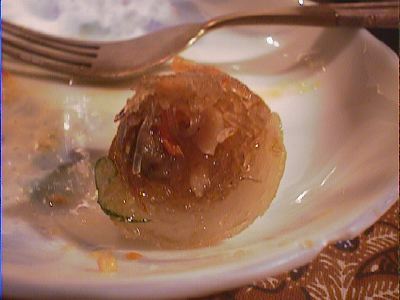 皮のぱりっとした食感と、春雨を楽しむかんじ。おいしかったよ。タレがもうちょっとすっぱいとよかった。(め)
