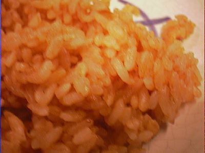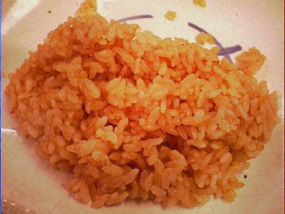 - ピラフ色がついてるのに味はあんまりないんだよね。ピラフだけ食べても美味しくないね。そういう意味ではソースと混ぜるのは正解だね。(め)
